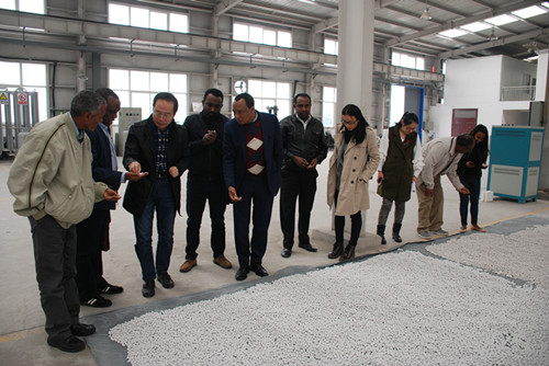 Dr. Alemu Sime一行還參觀考察了院機(jī)械廠、窯具廠,詳細(xì)了解產(chǎn)品創(chuàng)新、生產(chǎn)、銷售情況,通過現(xiàn)場(chǎng)觀摩,對(duì)我院的科研成果轉(zhuǎn)化和產(chǎn)業(yè)發(fā)展情況表現(xiàn)出極大的興趣,為以后雙方合作打下良好的基礎(chǔ)。