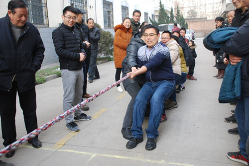 在新春佳節(jié)即將來臨之際,我院組織豐富多彩的活動迎接新年。 2月9日,院舉辦離退休人員迎新春座談會和趣味文體活動。院長、黨委書記梁振海及副院長、黨委副書記、紀委書記白戰(zhàn)英與40名離退休人員匯集一堂,歡慶新春佳節(jié)。梁振海代表班子成員向參會的離退休老同志致以節(jié)日的問候和衷心的祝愿,老同志們也感謝院對離退休人員的關(guān)懷。為了讓大家放松身心,老有所樂,會后工會還組織了趣味文體活動,老同志們熱情高漲,盡展才華,即豐富了大家的生活又使大家感受到了歡樂。 2月12日,院組織了迎新春職工體育活動。本次運動會共有7個參賽隊。項目有拔河、趣味保齡球、夾豆子、夾乒乓球、神投手等。員工們以飽滿的熱情和昂揚的斗志精誠團結(jié)、頑強拼搏。最為精彩激烈的要數(shù)拔河比賽。比賽前,各工會小組紛紛組織好自己的隊伍,隊員們個個精神抖擻,團結(jié)一心,奮力拼搏。當比賽哨聲一響,無論是場上還是場下,員工們都非常給力,富有節(jié)奏的吶喊聲、加油聲,使人感到震撼,比賽過程中常出現(xiàn)勢均力敵的精彩“拉鋸戰(zhàn)”。經(jīng)過緊張激烈的角逐,機械裝備隊獲第一名;條件保障公司隊獲第二名;窯具廠隊和機械廠隊獲并列第三名。 隨后,五樓會議室分別組織了趣味保齡球、夾豆子、夾乒乓球、神投手等比賽,大家歡聚一堂,充分享受趣味運動會帶來的歡樂。
