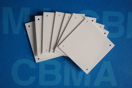 氧化鋁基片廣泛用于厚膜電路、薄膜電路、陶瓷覆銅板、半導體致冷器、臭氧發(fā)生器及電子陶瓷元件的薄型承燒板。我單位生產(chǎn)的氧化鋁陶瓷基片具有純度高、強度高、硬度大、表面粗糙度低等特點,在國內(nèi)居領先水平,可用于某些特殊薄膜電路、硅片支撐體、陶瓷防彈片等,根據(jù)用戶需求可在基片上進行劃線布圖、打孔,亦可制備氧化鋯、氧化鋅陶瓷基片。