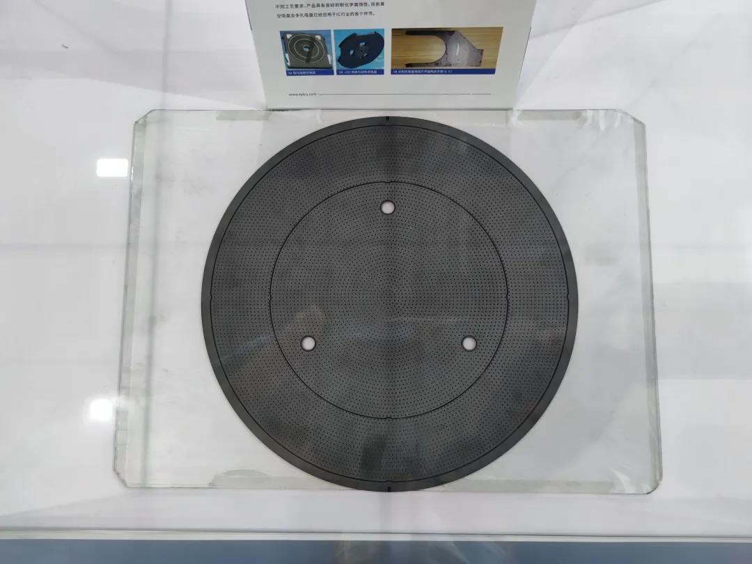 碳化硅陶瓷材料具有低膨脹、高導(dǎo)熱,高彈性模量等特點,本單位生產(chǎn)的真空吸盤采用中空、不對稱薄板結(jié)構(gòu)設(shè)計,產(chǎn)品具有高穩(wěn)定性、高輕量化及極低的晶圓接觸面積等特點;多孔吸盤可調(diào)整孔隙結(jié)構(gòu)及孔隙率滿足不同工藝要求,產(chǎn)品具有良好的耐化學(xué)腐蝕性,目前真空吸盤及多孔吸盤已經(jīng)應(yīng)用于IC制造行業(yè)的各個環(huán)節(jié)。