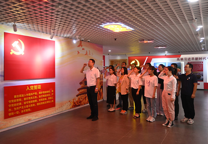 在黨性體檢中心,全體黨員重溫入黨誓詞,大家面對鮮紅黨旗,用擲地有聲的錚錚誓言表達(dá)對黨始終如一的忠誠。