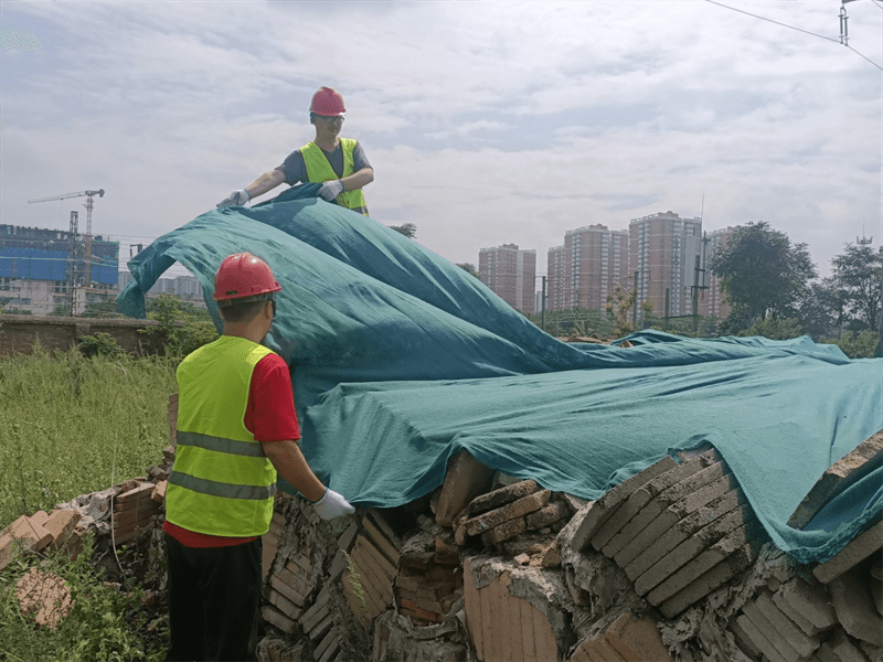 對園區(qū)南空地上存放的保溫磚表面進行防塵防雨覆蓋,以免造成環(huán)境污染。