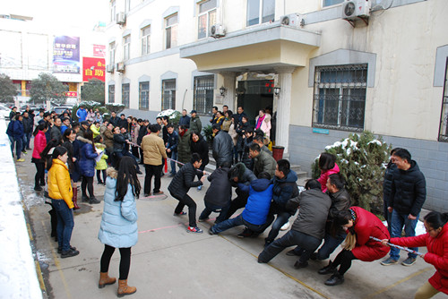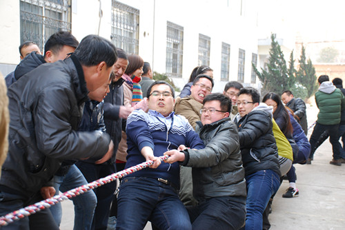 2月2日,在新年即將來臨之際,我院工會(huì)組織開展迎新春職工體育運(yùn)動(dòng)會(huì)。 運(yùn)動(dòng)會(huì)上,最為精彩激烈的要數(shù)拔河比賽。比賽前,各工會(huì)小組紛紛組織好自己的隊(duì)伍,六支代表隊(duì)的隊(duì)員們個(gè)個(gè)精神抖擻,團(tuán)結(jié)一心,奮力拼搏。當(dāng)比賽的哨聲一響起,隊(duì)員們高呼著“一二,一二”,雙手緊握長繩,勁往一處使,院領(lǐng)導(dǎo)們也在隊(duì)伍旁邊助陣加油,比賽中常出現(xiàn)勢(shì)均力敵的精彩“拉鋸戰(zhàn)”,此起彼伏的加油聲和助威聲使比賽場面熱火朝天。經(jīng)過緊張激烈的角逐,機(jī)械裝備部隊(duì)獲第一名;物業(yè)保衛(wèi)部隊(duì)獲第二名;機(jī)械廠隊(duì)獲得第三名。 隨后,五樓大會(huì)議室分別組織了趣味神投手、夾豆子、趣味套圈、吹蠟燭等比賽。每一個(gè)比賽項(xiàng)目不僅鍛煉大家的動(dòng)手動(dòng)腦能力,也加強(qiáng)大家在工作中能夠團(tuán)結(jié)協(xié)作的精神。通過這次工會(huì)活動(dòng),展現(xiàn)了我院廣大職工斗志昂揚(yáng)和團(tuán)結(jié)向上的精神風(fēng)貌,活躍了大家業(yè)余生活,同時(shí)增強(qiáng)了各部門之間的相互交流和溝通,凝聚了力量,推動(dòng)我院新一年工作再上新臺(tái)階。